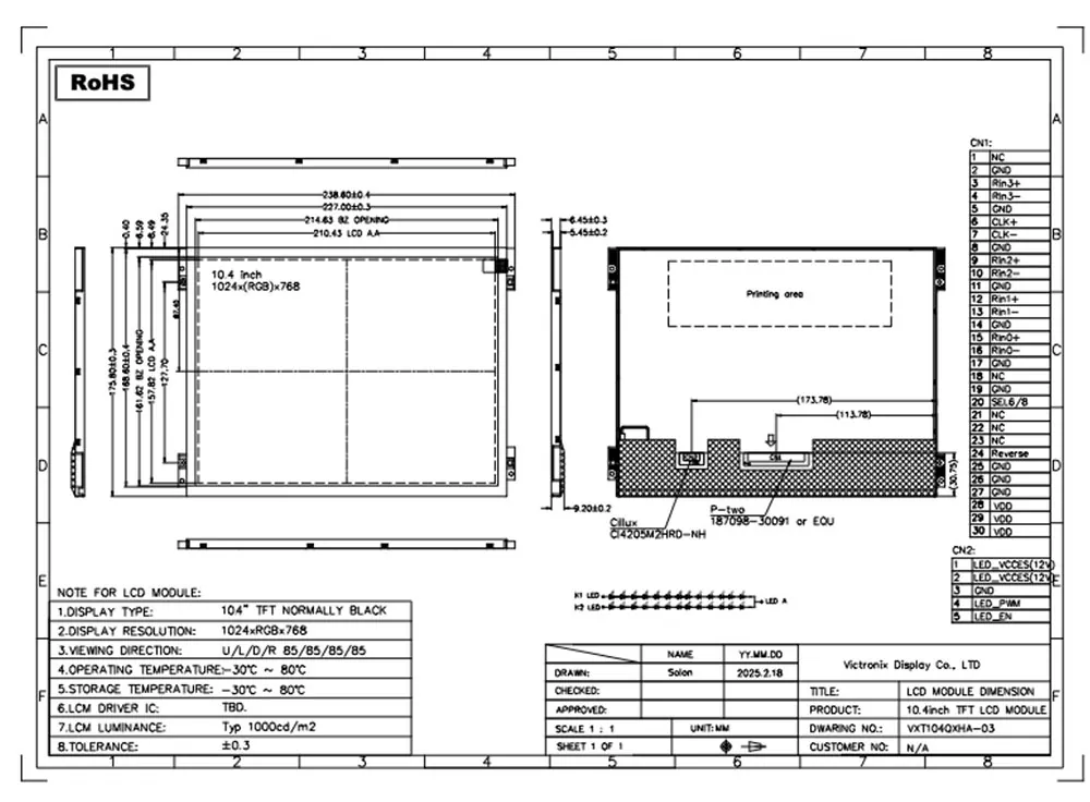 Овој Victronix 10,4 инчи 1024 × 768 LVDS висока осветленост TFT модул е високо-перформанси 10,4 инчи TFT-LCD модул дизајниран за сигурност во индустриските околини. Одликувајќи се со IPS панел со резолуција од 1024 × 768 и 16,7 милиони бои, испорачува исклучителна визуелна јасност со широки агли на гледање од 85 ° (3/6/9/12 часот насоки). Покрај тоа, тој нуди висока осветленост од 1000 ЦД/М², сооднос на контраст од 1000: 1 и униформност од 80% за јасно гледање под директна сончева светлина. Како професионален производител и снабдувач на TFT модули во Кина, овој модул Victronix 10.4 инчен TFT е целосно во согласност со стандардите на животната средина на ROHS, обезбедувајќи супериорни перформанси на апликацијата. Ние нудиме прилагодена услуга за да ги задоволиме потребите на нашите клиенти.